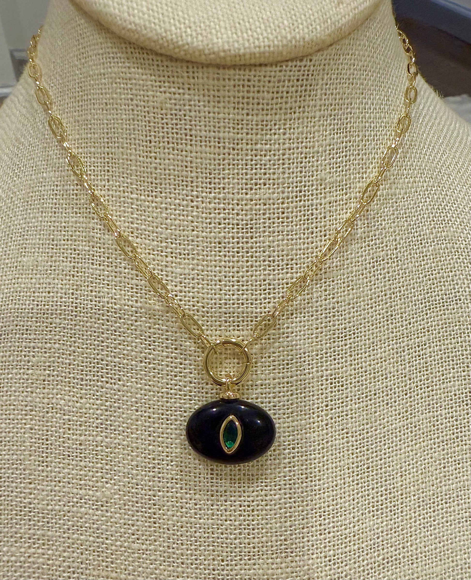 - Front charm ring with onyx oval charm with semi precious emerald stone
